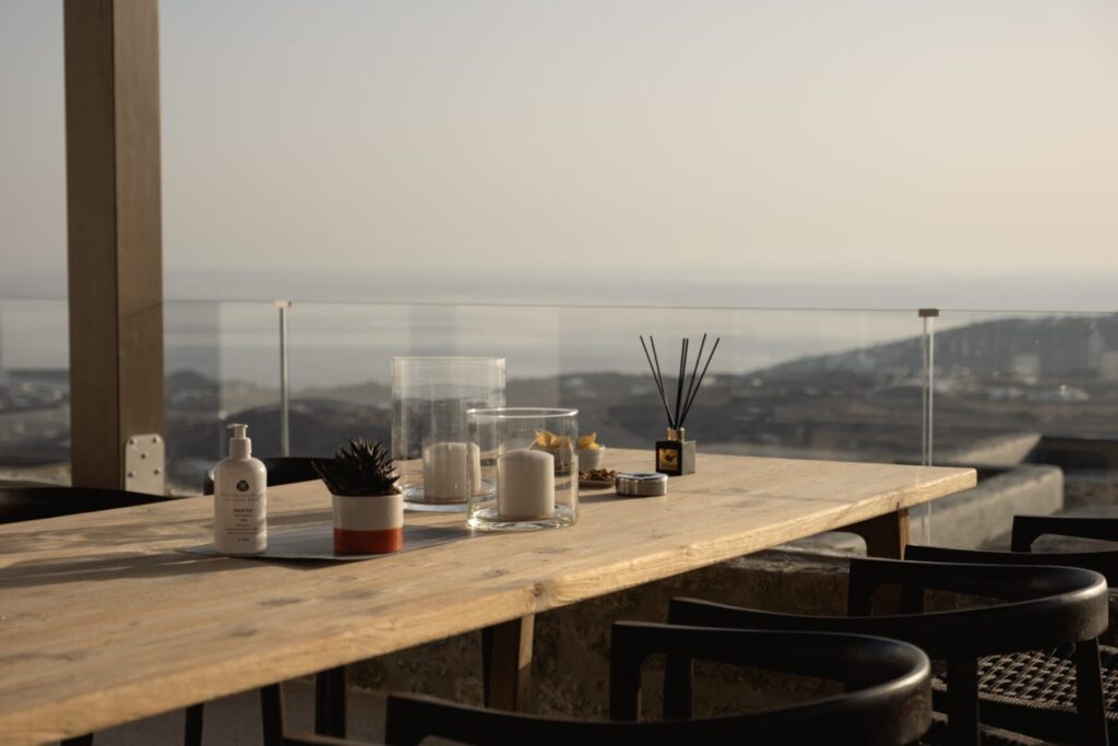 Elevated both in location and experience, Panorama Venue is Mykonos Rocks’ exclusive fine dining restaurant — a sanctuary of flavour and light reserved for our guests. Perched atop the Kounoupas hillside, the venue commands soul-stirring views over the shimmering Aegean, offering a front-row seat to the island’s most spectacular sunsets.
